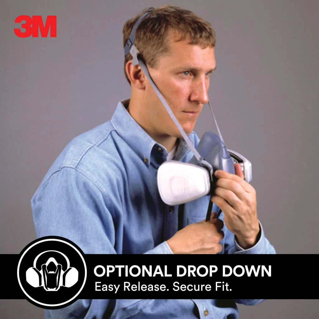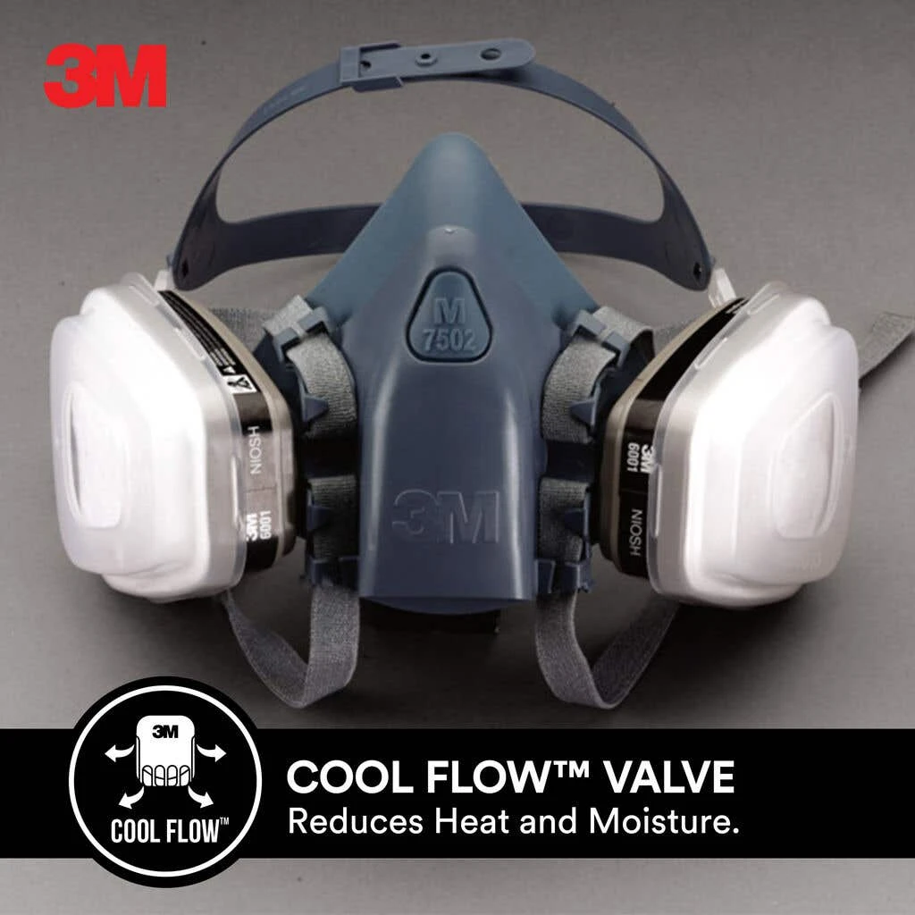 The 3M Cool Flow Painter Protection provides users with state-of-the-art features and technology, offering advanced protection and comfort for professionals. Its soft yet firm silicone face seal grants users the comfort to wear the for long periods, and the silicone facepiece ensures soft, secure fit that doesn’t irritate the skin. The proprietary cool flow valve helps release moisture buildup within the respirator, and helps keep your skin cool even when used in warmer environments. This respirator also features a dual mode head harness that adjusts easily and quickly for standard and drop down modes. This powerful respirator can be used for paint spraying, sanding and paint prep jobs, solvents, pesticides, and many other professional projects. This kit includes one pair 6001 organic cartridges, two pair 5P71 N95/P2* filters and one pair 501 retainers.
