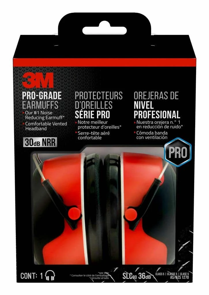 3M Pro Grade Earmuff offers superior comfort and protection. The 3M Pro Grade Earmuff is designed to be a high noise-reducing/protection earmuff. Adjustable, vented headband design reduces heat build and improves comfort when worn with hats. Part of the 3M Pro Series Safety Products line that was designed for the way pros think, the way they shop and the way they work.