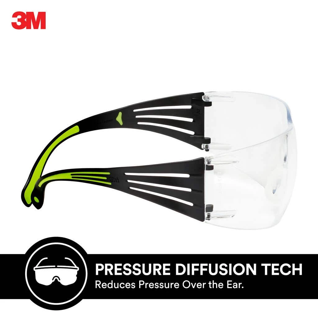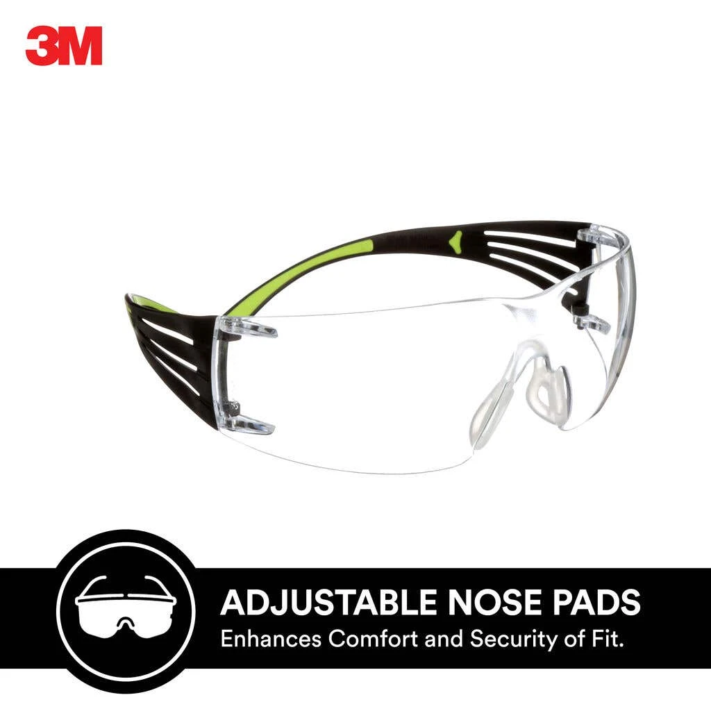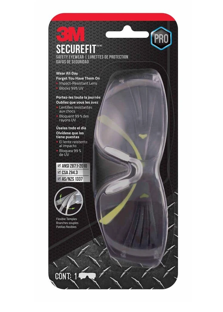 3M SecureFit Safety Glasses takes comfort to the next level. The new 3M SecureFit Safety Glasses 400 Series enhances comfort and security of fit with soft adjustable nose pads and dual injected temples. Constructed of polycarbonate lenses with an anti-fog coating, the wrap-around lens design provides excellent coverage and a good field of vision.