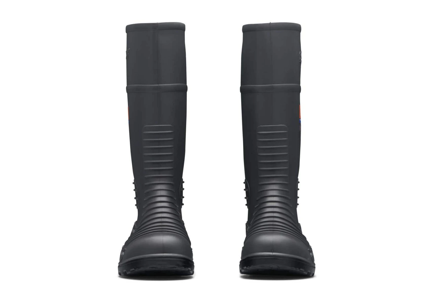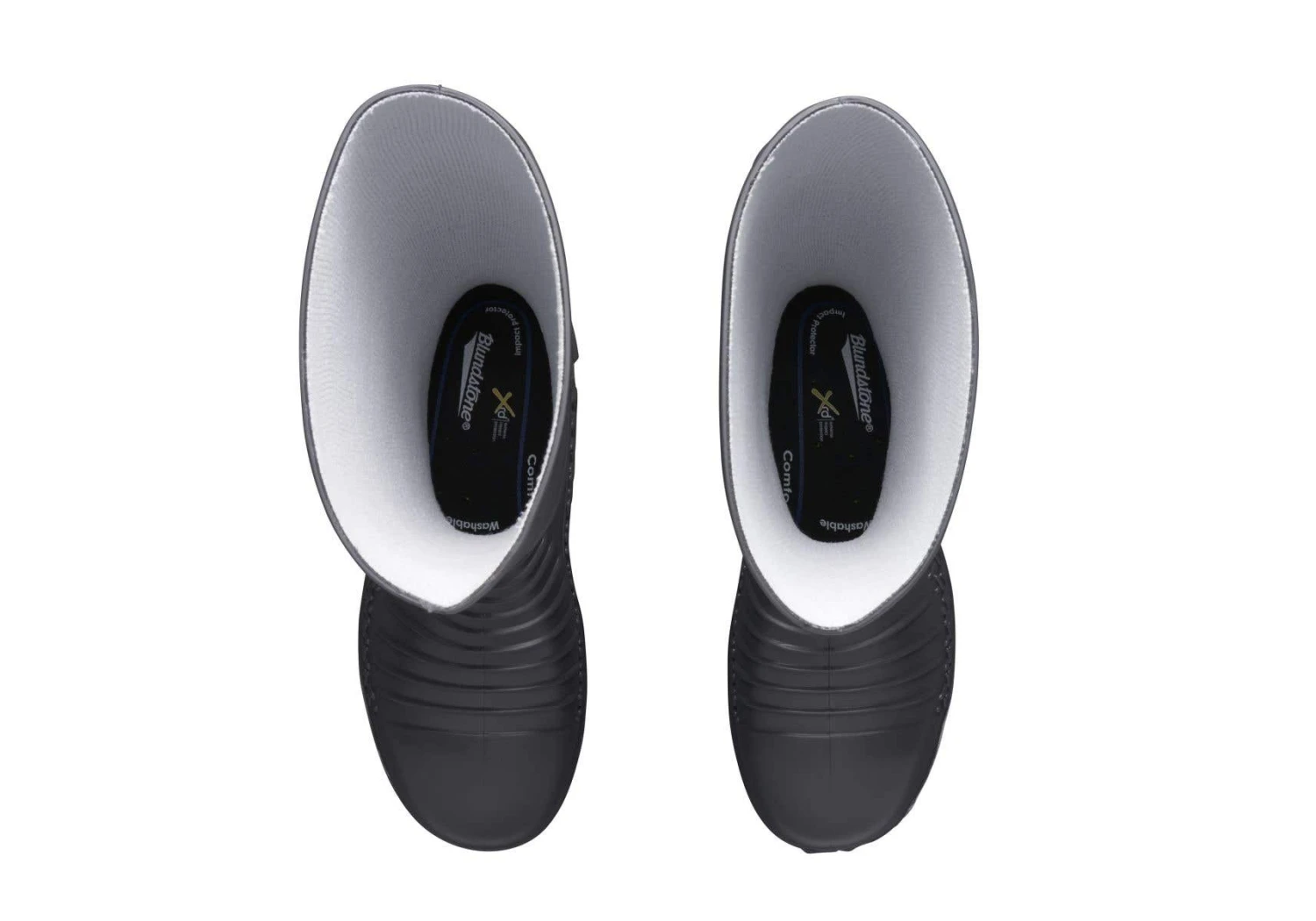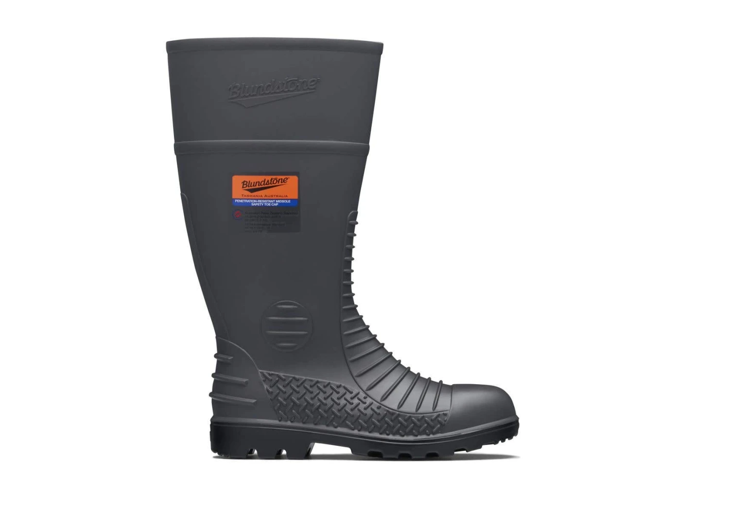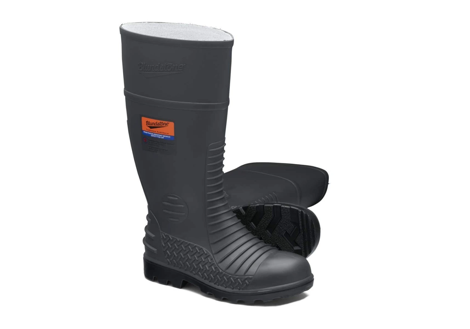 - Grey safety gumboot made to withstand harsh working environments like underground mining.
