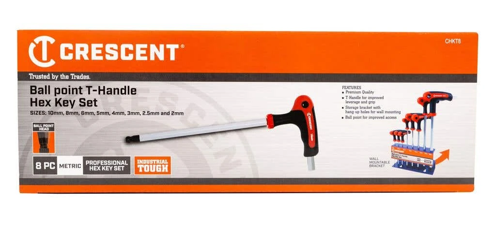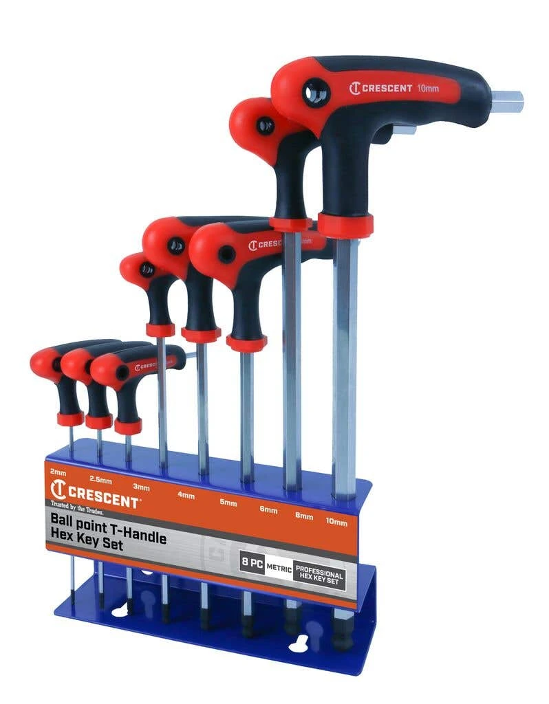 This convenient and durable 8-piece hex key set provides you with the tools you need for any . A perfect tool for everyday jobs. The T-handle design gives you improved leverage and grip, while handy hang-up holes make this set easy to hang on your wall. The ballpoint will give you better access than any other tools in our shop. This is an affordable professional set at a great price.