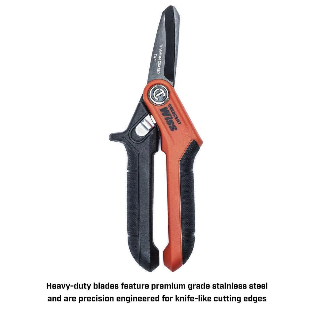 Crescent Wiss 216mm/8.5″ All-Purpose Scissors feature premium-grade stainless steel blades, precision-engineered to stay sharp far longer than typical scissors made for around the home and craft use. An adjustable pivot allows cutting blade tension to be fine-tuned for optimal performance, while an asymmetrical handle ring design makes these scissors extremely comfortable for either left or right-handed users.