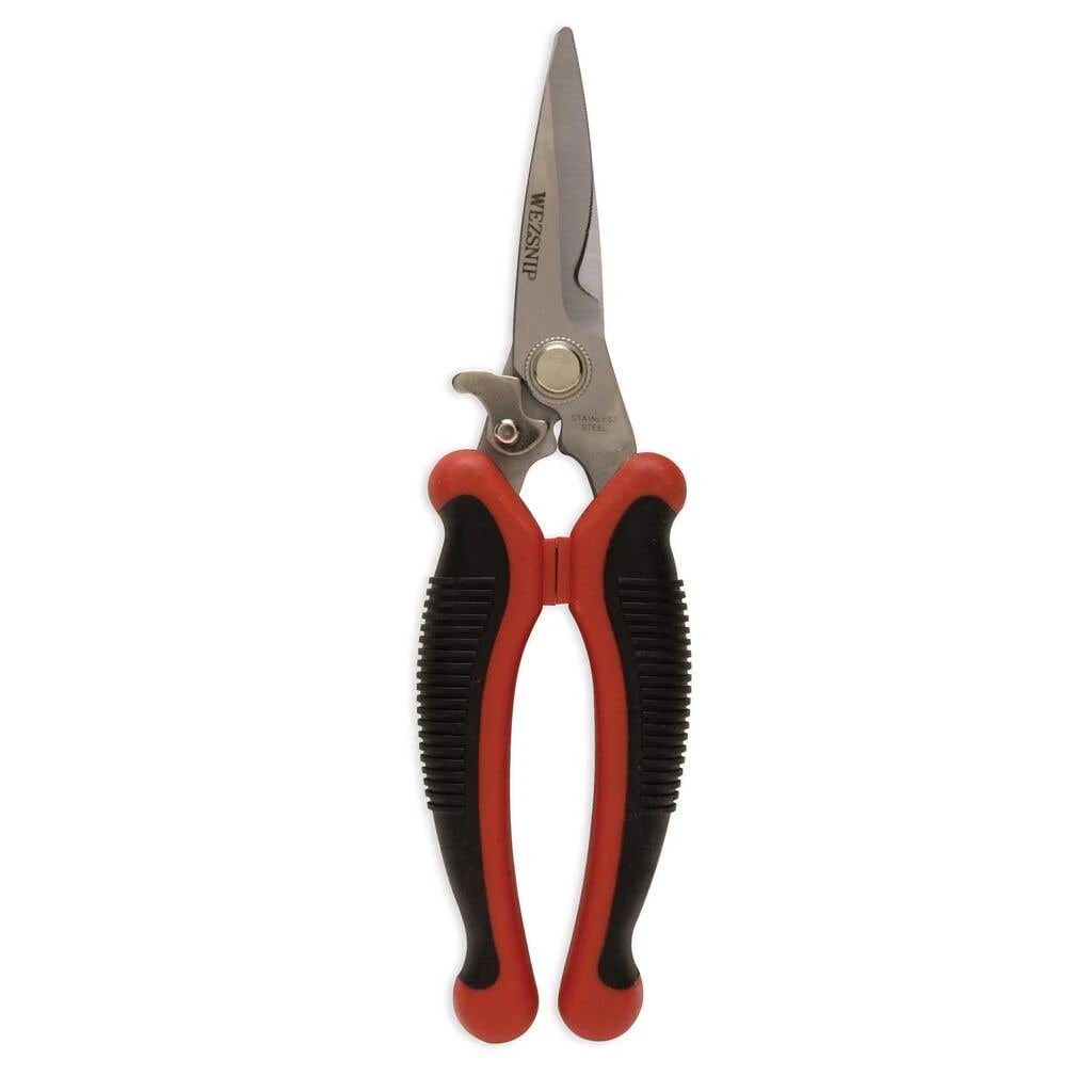 The Crescent Wiss Easy Snip Utility Shear features a serrated bottom blade that grips material as it cuts and a wire cutting notch for cutting light gauge wire. These Snips are great for use in the shop, garden, and home.