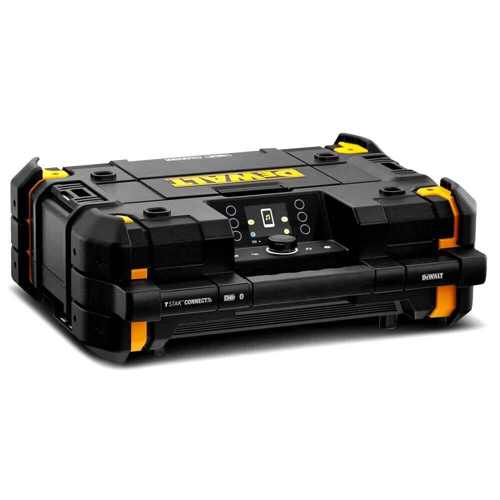 With a 6-speaker surround sound, 2 mid-range speakers on the front and the back, as well as 2 powerful subwoofers on the bottom, the Digital Bluetooth Radio & Charger is a 45W output powerhouse. Supporting FM, AM and DAB+ functions, users can enjoy background music as they work. Alternatively, with both low-energy Bluetooth capability and a 3.5mm aux connection, you are free to control the unit remotely using dedicated mobile app, playing your personal tunes or even using it as a site PA system from the microphone of your connected device. Designed with the knowledge that it will need to go with you everywhere, the unit has TSTAK stacking latches and shock-absorbing, robust rubber bumpers on all 4 corners resulting in outstanding durability. When connected to mains power, you are able to quickly charge 18V XR or FlexVolt , allowing you to last longer on the job, kept entertained by this quality, multi-functional system.