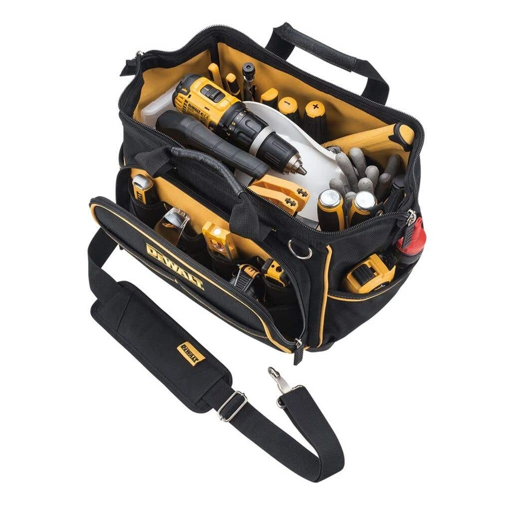 The MultiTak is made from durable 1200 denier polyester fabric. It features Hi-Viz Yellow Piping – Easy To Spot That Misplaced ! These also have PVC sewing on the bottom for abrasion concerns. Its yellow double stitching provides enhanced strength for regular use. Also equipped with rigid water-resistant base in case of fixings in wet or moist environments. Comfortable PVC grip handles when you’re bringing heavier tools. With 9 pockets total, this bag ensures proper organization of your tools. It also has a shoulder strap for when you’re carrying more things than this bag. Its heavy-duty zips ensure accessibility to your tools. Bag only, tools not included.