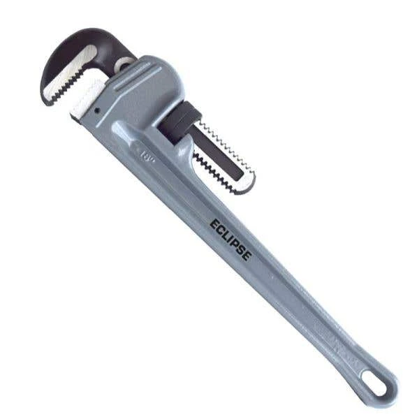 The Eclipse Aluminum Leader Pattern Pipe Wrench is made from one piece lightweight aluminum casting. This hardened and tempered steel adjustment nut opens the jaws when pressure is applied and keeps them open until pressure is applied. The Aluminum Leader Pattern Pipe Wrench is ideal for manipulating large capacity threaded pipe joints and tightening or loosening threaded collars on pipe work, nuts and bolts.