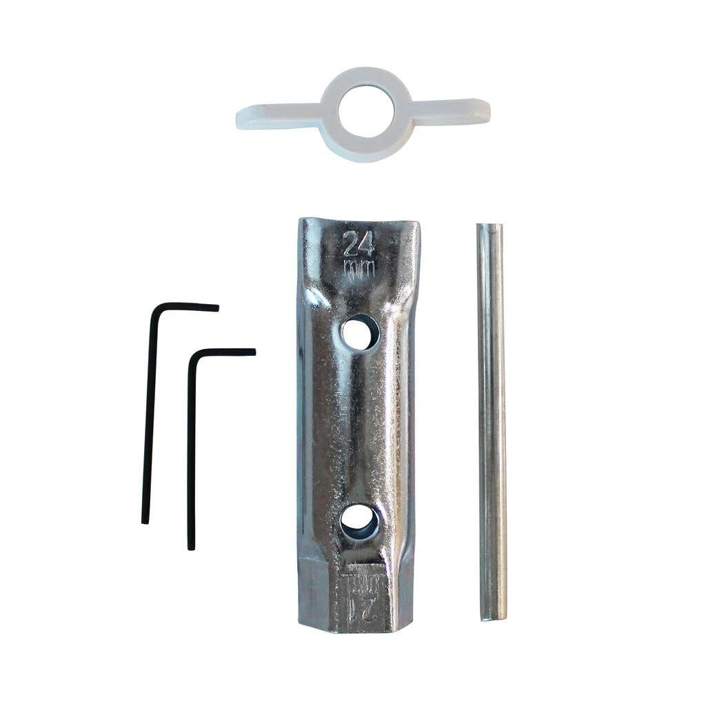 The tap spanner set is designed to tighten and loosen mixer taps. The handy kit comes with hex Allen key sizes 21mm square 24mm. Suitable for most mixer taps and will bring you comfort in your daily use of tap water.