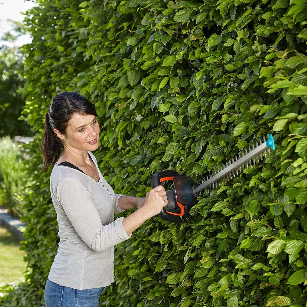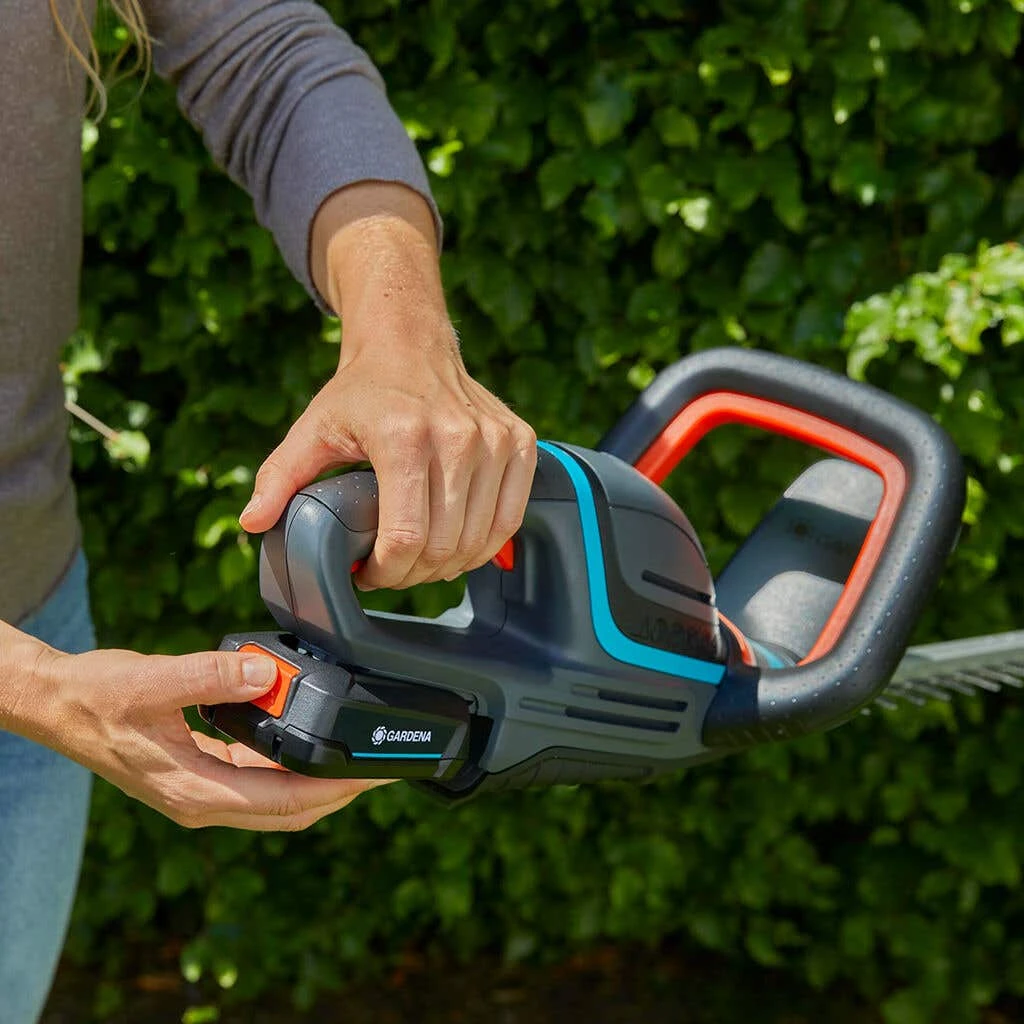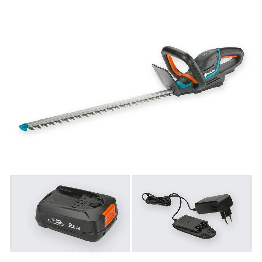 Cordless, convenient, lightweight and easy to use: With the Gardena Hedge Trimmer ComfortCut 60/18V P4A, you can trim medium-sized hedges without much effort at all. The set comes with a Gardena Charger and a 2.5Ah 18V POWER FOR ALL Battery that has a maximum runtime of 56 minutes, allowing you to cover up to 188 square metres of hedge on each charge.Cordless, convenient, lightweight and easy to use: With the Gardena Battery Hedge Trimmer ComfortCut 60/18V P4A, you can trim medium-sized hedges without much effort at all. The set comes with a Gardena Charger and a 2.5Ah 18V POWER FOR ALL Battery that has a maximum runtime of 56 minutes, allowing you to cover up to 188 square metres of hedge on each charge. This product is covered by the Gardena two-year warranty. If you register your battery product within three months of purchase, your two-year warranty will be extended by one year therefore covering your purchase for 3 years in total (wear parts and battery excluded).
