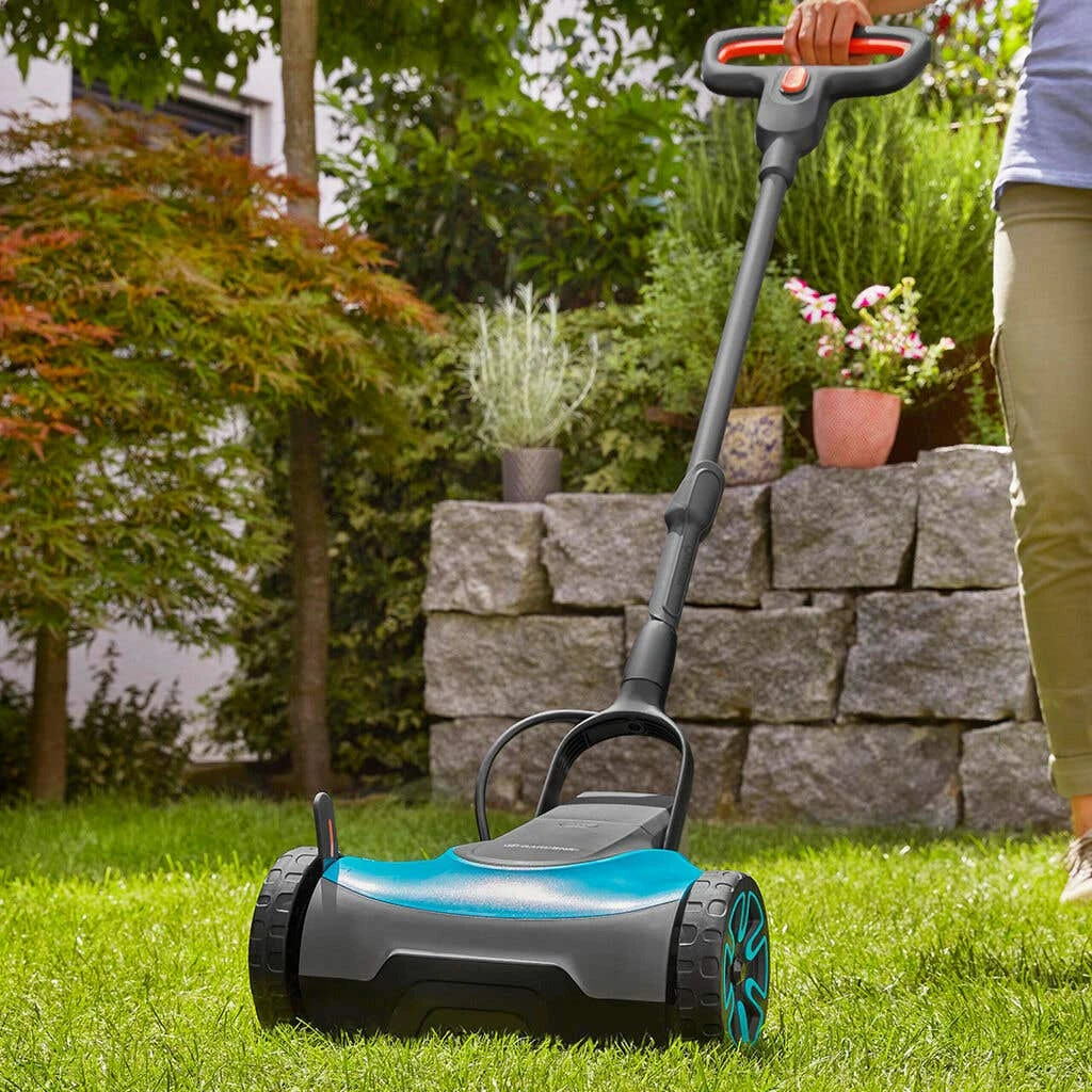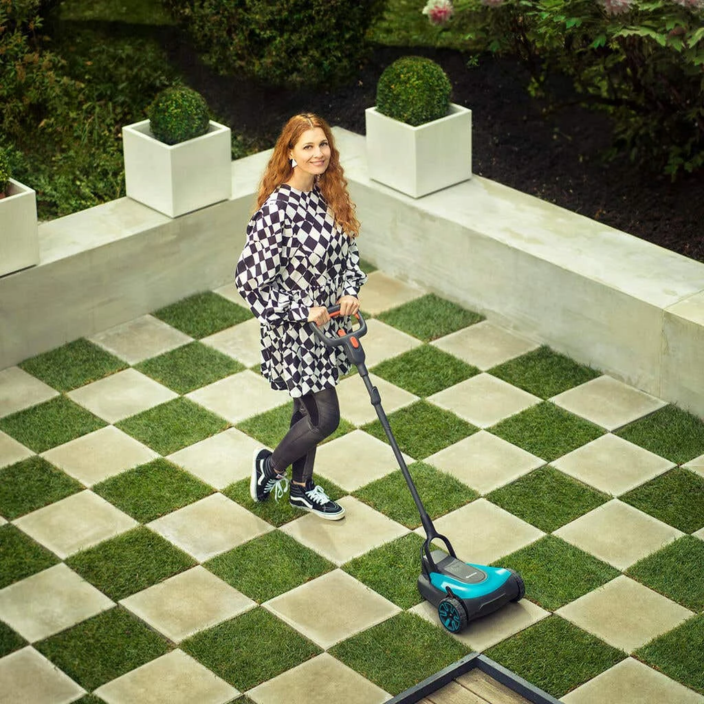 The HandyMower has a 22 centimeter mulching blade, which shreds the grass clippings finely and lets them fall back to the ground. The cuttings then act as a natural fertiliser. There is no need to collect or dispose of the grass clippings – saving you time and space. Covered by the Gardena two-year warranty. If you register your battery product within three months of purchase, your two-year warranty will be extended by one year therefore covering your purchase for 3 years in total (wear parts and battery excluded).