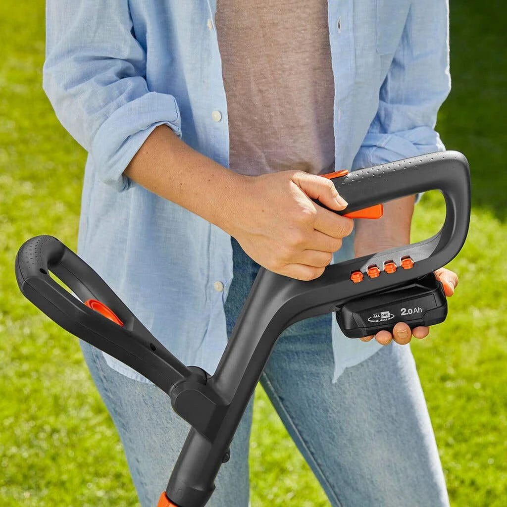 The Gardena Trimmer EasyCut 23/18V P4A makes it possible to keep your lawn in perfect shape, even in spots that are usually hard to reach. Depending on the battery used, the lightweight Battery Trimmer EasyCut 23/18V P4A can reach a maximum battery run time of up to 135 minutes and cut up to 3,375 metres of lawn edge per run time. The Gardena Battery Trimmer EasyCut 23/18V P4A makes it possible to keep your lawn in perfect shape, even in spots that are usually hard to reach. Depending on the battery used, the lightweight Battery Trimmer EasyCut 23/18V P4A can reach a maximum battery run time of up to 135 minutes and cut up to 3,375 metres of lawn edge per run time. Do you want to trim underneath obstacles? Then simply tilt the head of the trimmer. Do you want to cut along vertical edges? Push the button and swivel the pivoting head into edging position. This angle is perfect for tidying up around edges of paths and flower beds. This product is covered by the Gardena two-year warranty. If you register your battery product within three months of purchase, your two-year warranty will be extended by one year therefore covering your purchase for 3 years in total (wear parts and battery excluded).