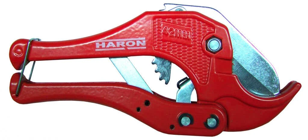 With a built-in ratchet action to ease cutting, the Haron PVC Plastic Pipe Cutters 42mm is ideal for cutting PVC plastic pipes. Each squeeze of the handle will pull another rung of the ratchet mechanism so that you can apply continuous force with a minimal amount of motion and effort. Quick clean-cut results are achieved. The jaw plates are extra thick to guarantee precise measurements.
