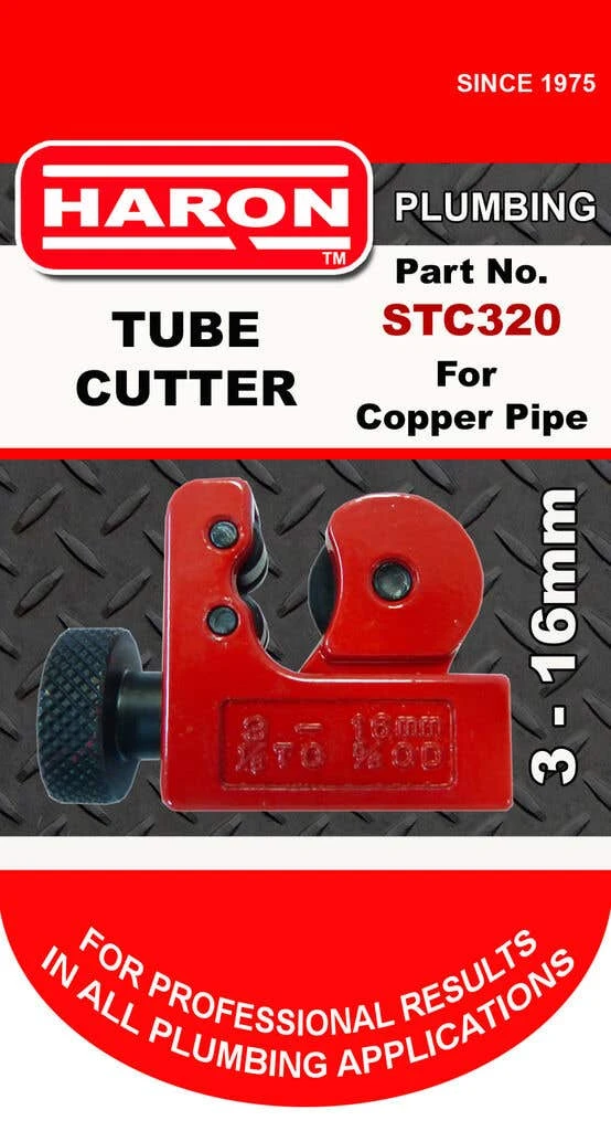 Haron Tube Cutter 1/8-5/8 Stc320 . This Clean Cut Machine is made from zinc alloy. The floor plate of this machine is designed for easy placement of workpieces with the chuck knob. Midi cutter type, Double rollers, Cutting capacity of 3 mm to 28.5 mm and for cutting brass and copper. The tool is adjustable, so you can use it to cut a variety of pipe sizes. It’s typically used in plumbing and electrical applications where water pipes and power conduits.