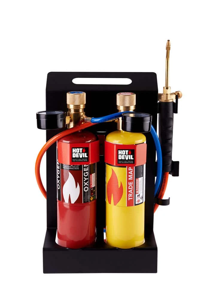 The Super Oxy Blow Torch Kit is ideal for silver soldering copper pipes, loosening rusted nuts, bolts, or screws, brazing copper, mild steel or aluminum, and jewelry work, as well as general heating applications. With its solid brass frame, high burn temperature of 2926°C this easy-to-use, multi-purpose Super Oxy Blow Torch Kit is ideal for tradesmen and home handy workers alike.