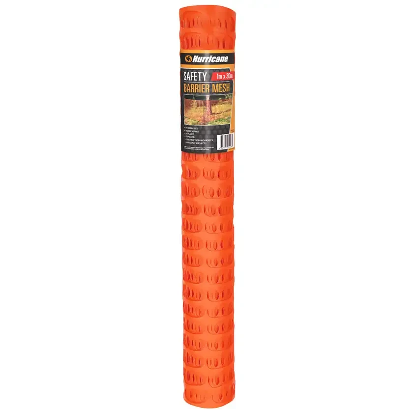 This Hi Vis colour Hurricane safety mesh provides the ability to build a temporary barricade wall. Easily attached with ground stakes or wire strands, this heavy duty plastic barricade mesh clearly identifies “no entry or dangerous” areas around a commercial or trade building site, along roadsides or any other safety zoned area. Simple to roll back up and reuse when needed.