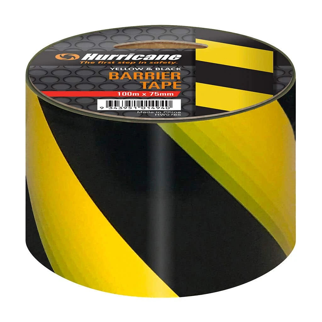 Hurricane highly visible Yellow / Black striped tape is perfect for safety identification around dangerous areas, this 75mm wide tape can be used to cordon off entry & exit points. This tape is non adhesive PVC and can be tied between posts, bollards or cones.
