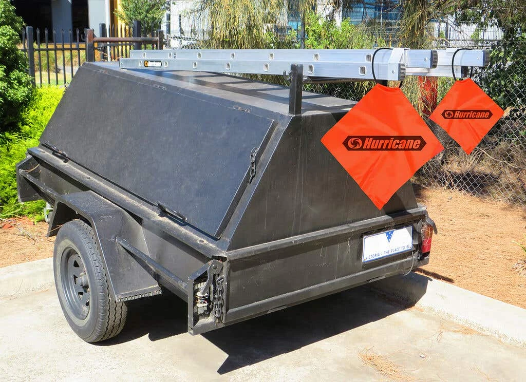 Hurricane Hi-vis Safety Orange Trailor Flags are perfect safety identification on overhanging loads on roof racks or trailers, tie on with rope included, can also be used to safely identify dangerous areas on building sites, suitable for outdoor or indoor use.