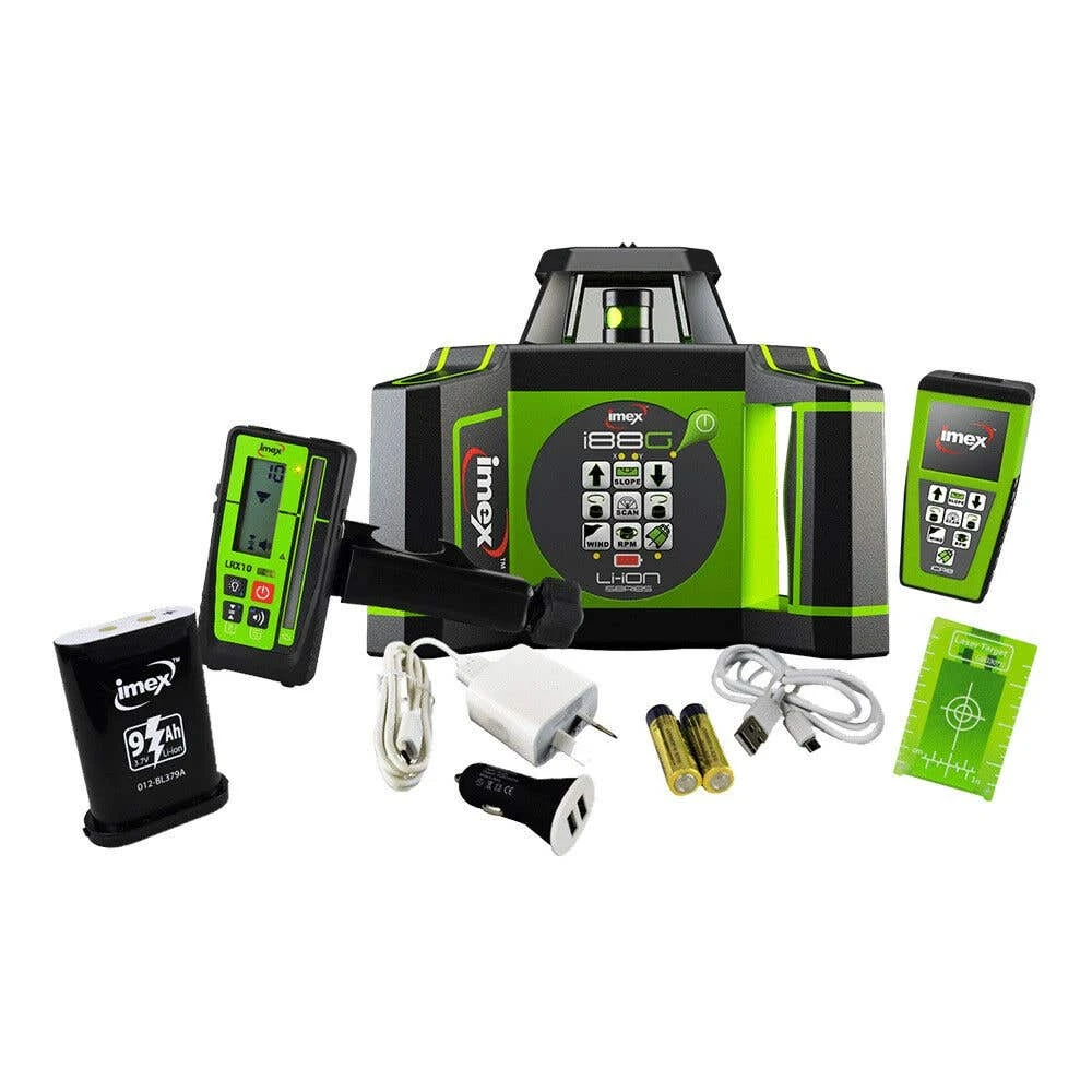 The Imex Green Beam Rotating Laser I88G is a powerful and versatile tool for surveying. This green laser rotates 360 degrees horizontally and 270 degrees vertically, allowing you to accurately measure distances up to 20m (65ft) away. It has an IP67 water-resistant/shockproof rating and comes complete with a fully enclosed laser housing for extra dust resistance. The LRX10 digital detector can also be used with standard targets.