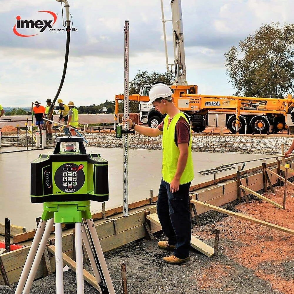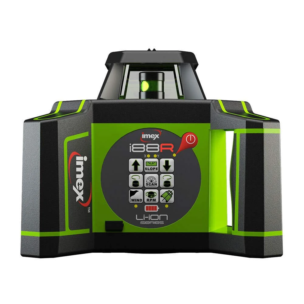 The Imex Rotating Laser Level I88R is a fully enclosed laser level with a built-in target plate and 9Ah Li-Ion that gives 40 hours of constant rotation. The 9Ah Li-Ion is the same size as standard 18V batteries, so easy to swap out if you need to. It uses German mode to make measurements in millimetres, so if you’re in a country where this is the official measurement type then you can switch between English and German modes without needing any additional equipment.