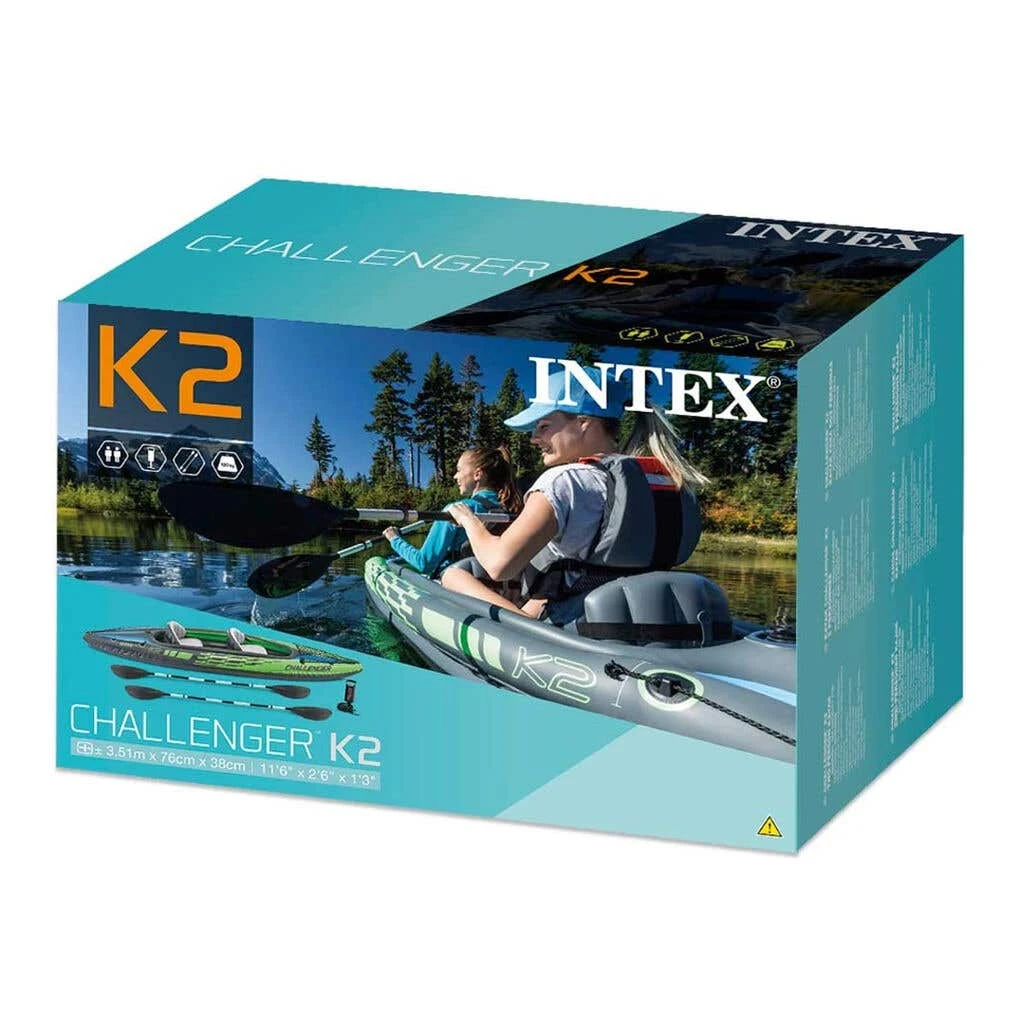 Designed for easy paddling, the Intex Challenger K2 Kayak is a must-have for your next water escapade. This inflatable kayak seats two passengers and is perfect for a relaxing day out on a lake or slow river. This high-visibility kayak has a spacious, fully enclosed cockpit with two adjustable seats. It has an inflatable I-beam floor for added comfort and rigidity, and a removable skeg for better steering.