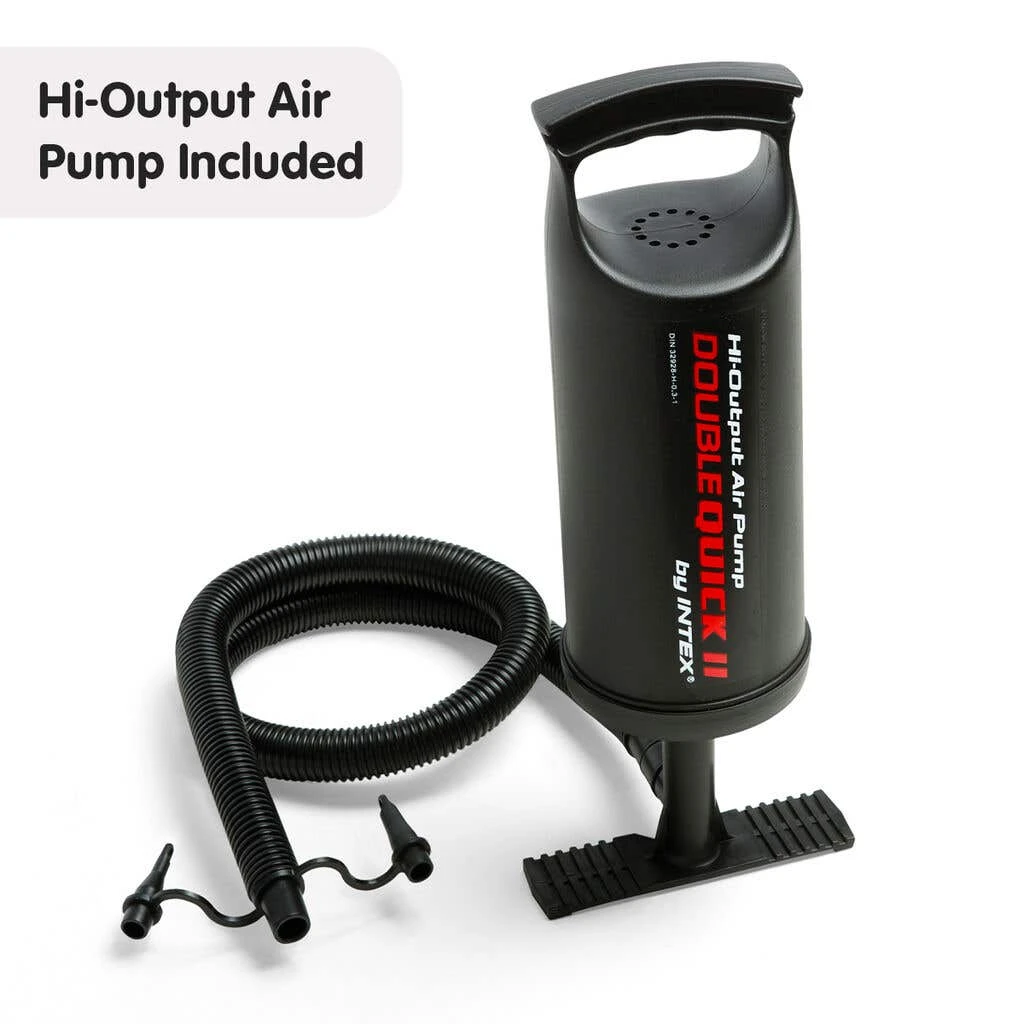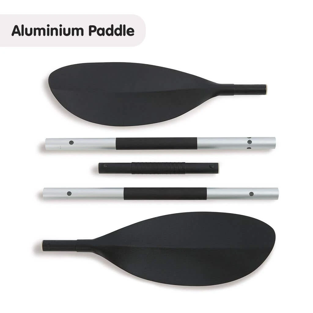 It has grab lines on both ends and a cargo net for storage, so you can bring everything you need for a fun time out on the water. Each two-seater kayak comes with a storage bag, two aluminium paddles and a high-output hand pump for quick inflating and deflating. With its small storage footprint, you can stash it anywhere you want ready for your next getaway.