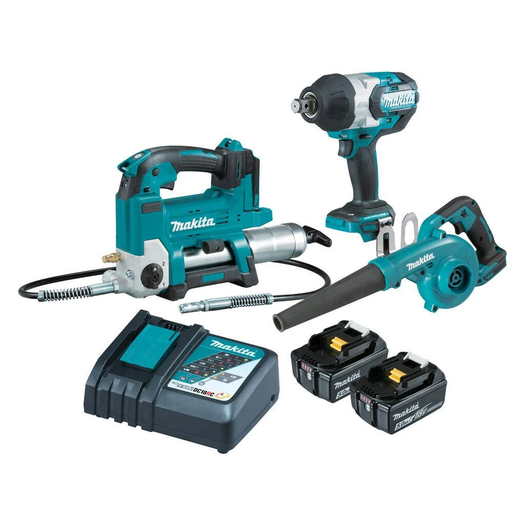 The DGP180 is an industrial application solution, providing efficient grease lubrication for a wide range of applications. Featuring a maximum 10,000psi discharge pressure and 295mL/min discharge rate, with a 1,200mm long flexible hose enabling access to hard to reach and tight spaces. The DGP180 also features an automatic pressure switching function which maintains a steady flow rate regardless of the pressure of the application at hand. The DGP180 is also equipped with convenient features such as a variable speed trigger for control over grease flow rate, and a LED job light with a manual Off and On switch.