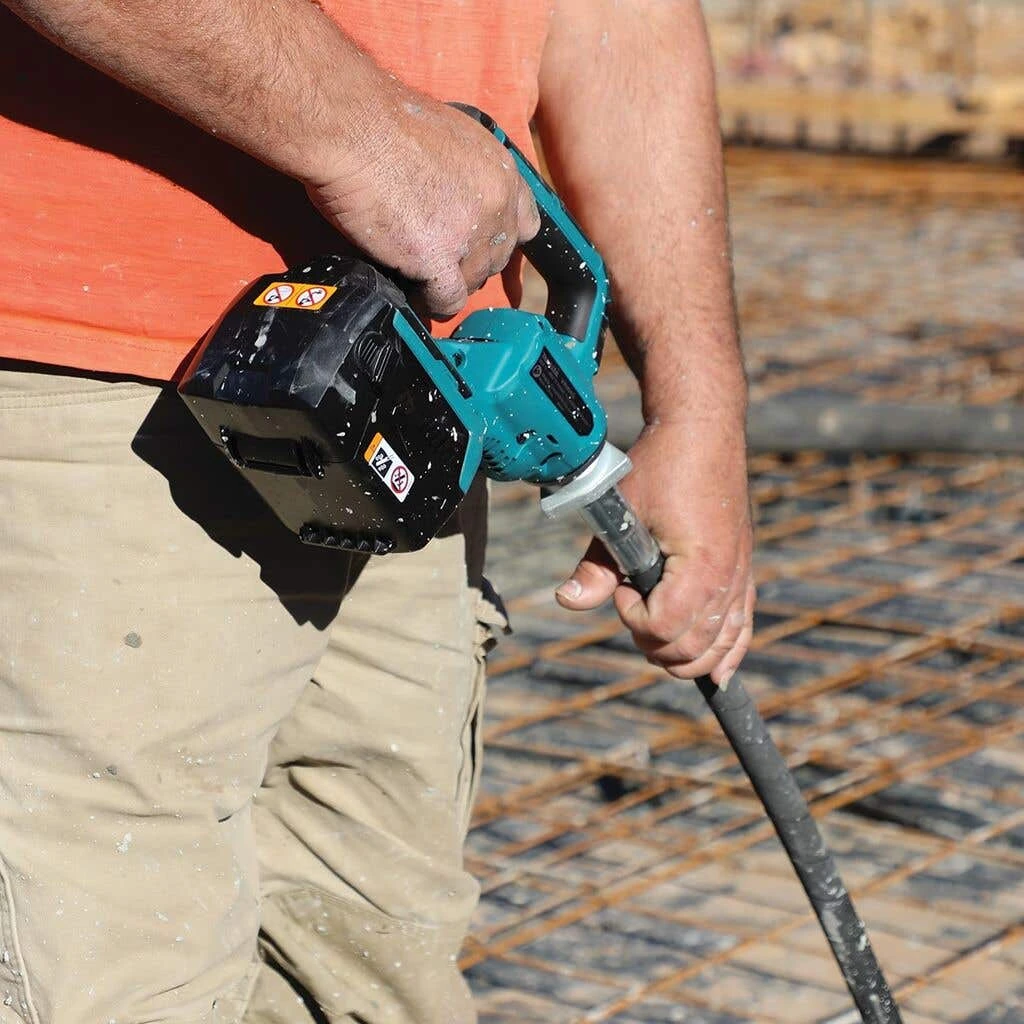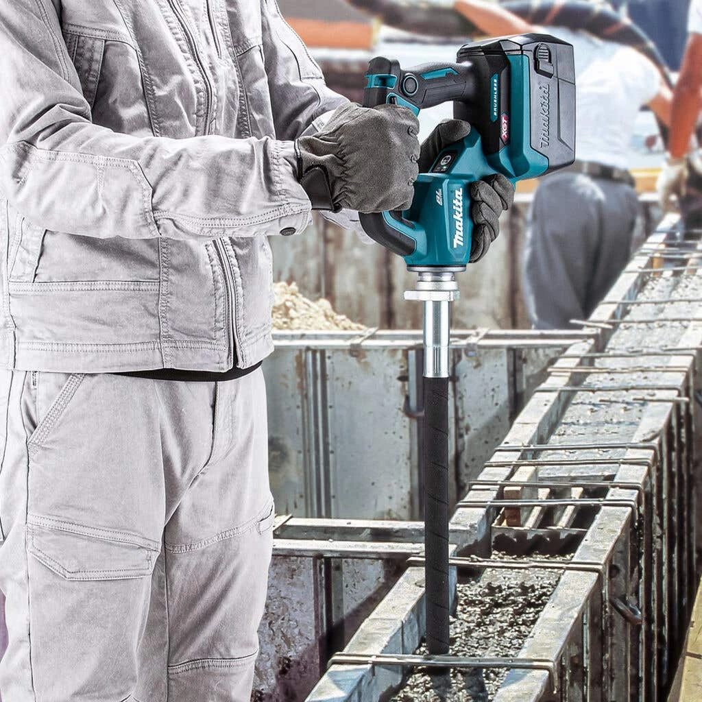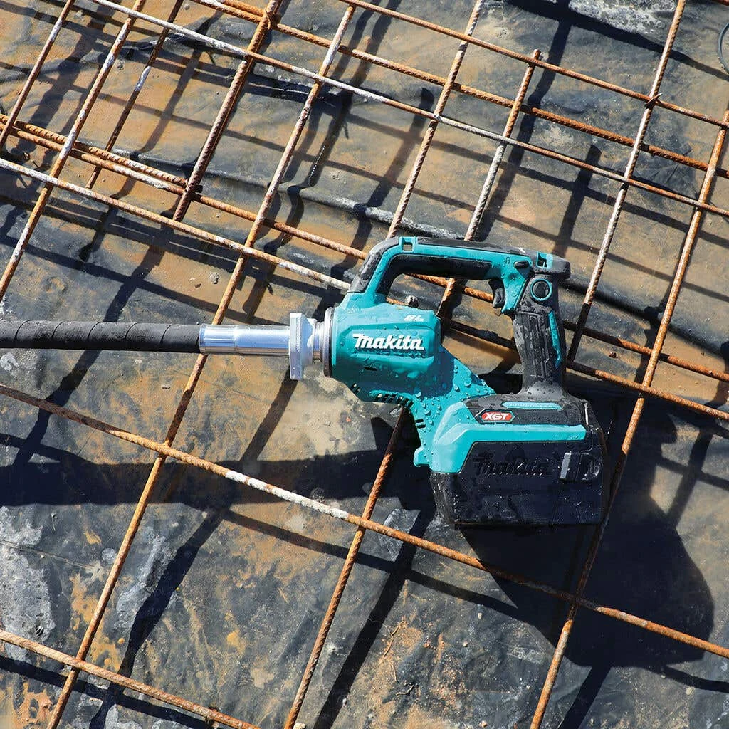 The 40V Max XGT Concrete Vibrator (VR004G) delivers more run time with maximum vibrations per minute for strengthening concrete in a wide variety of applications such as floors, columns, walls, piers and stairs. The VR004G is lightweight, with dual power modes allowing for more control when working in delicate areas. The highly durable design, with enclosed battery housing, ensures all critical internal components are protected against dust and moisture. The brushless motor delivers 15,500 vpm and up to 40 minutes run time under load using a fully charged 40V Max 4.0Ah battery. Available in both 1,200mm and 2,400mm shaft lengths that are both 38mm in diameter for more effective levelling and consolidation of concrete.