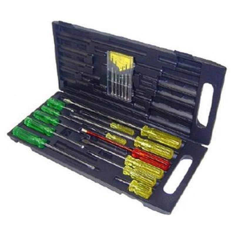Great for households who need a variety of screwdrivers, this 19-piece includes Phillips 1, 2, 3, and slotted blades. Each blade is heat-treated for greater strength and includes a chrome-plated magnetic tip for easier use.