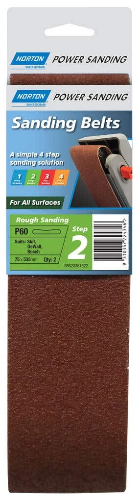 Norton Cloth Sanding Belt P60 Grit is the perfect sanding solution for all your woodworking and metalworking needs. This pack includes two durable and high-performance sanding belts that deliver exceptional results for a variety of sanding applications.