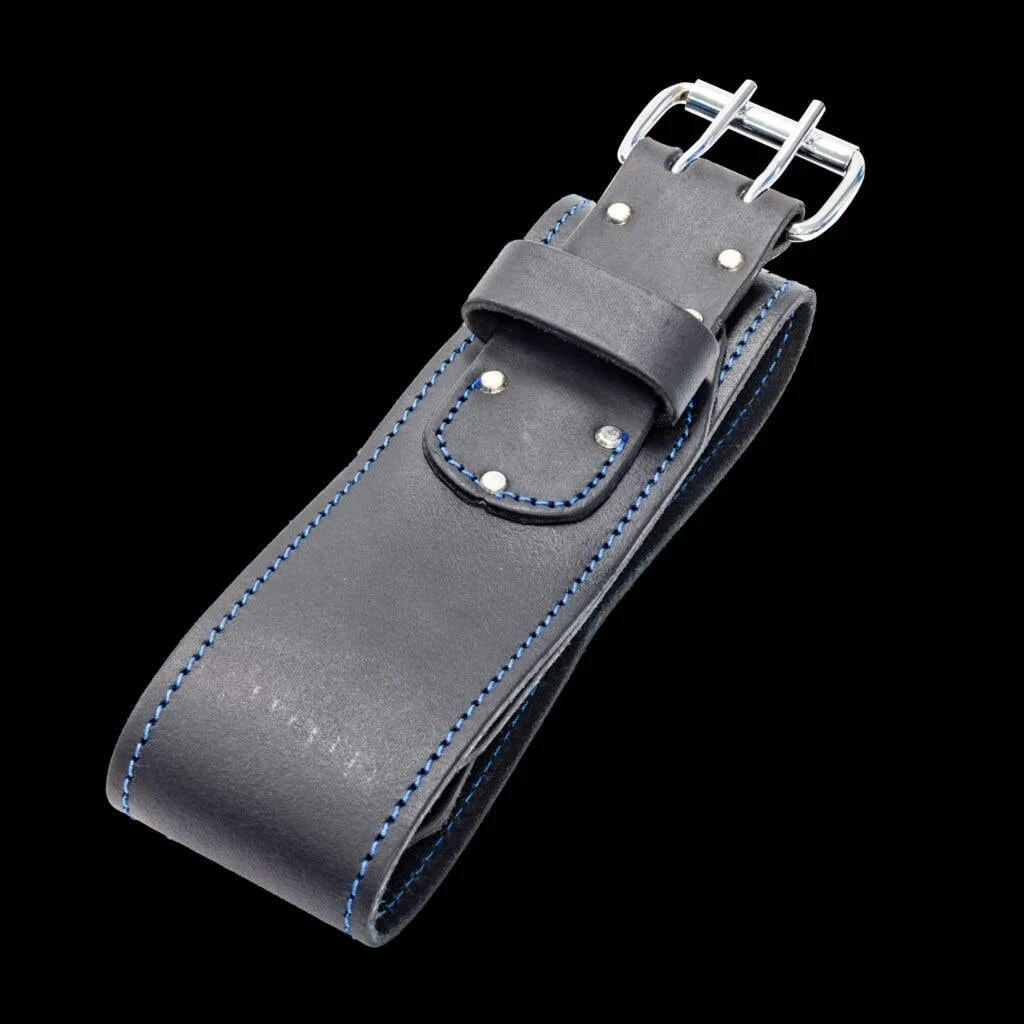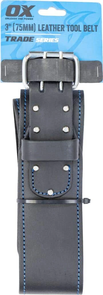 Strong, durable, and flexible, this heavy-duty leather work belt is made from oil-tanned split cow leather that is 3mm thick. Featuring a sturdy roller buckle, a double row of holes for strength and durability, and water-resistant nylon stitching throughout. This belt will last you many years of hard work.
