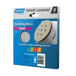 Norton Sanding Discs Step 1 Heavy Stripping P80 Grit 150mm 6 + 1 Holes X 180g – 5 Pack