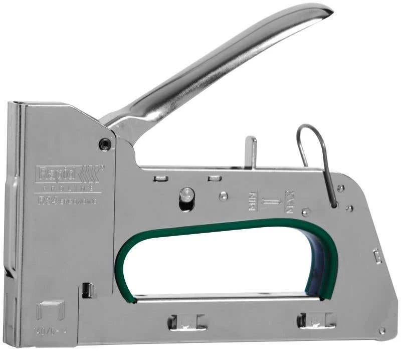 The Rapid No.34 Staple Gun is ideal for securing tiles, insulation materials, plastic sheeting, and other construction items to walls and floors. With a full-width handle designed for comfort and safety, this staple gun is well balanced for ease of use. With an adjustable force feature and a patented noise damper to dampen noise levels, you’ll be able to work in peace while creating beautiful installations.