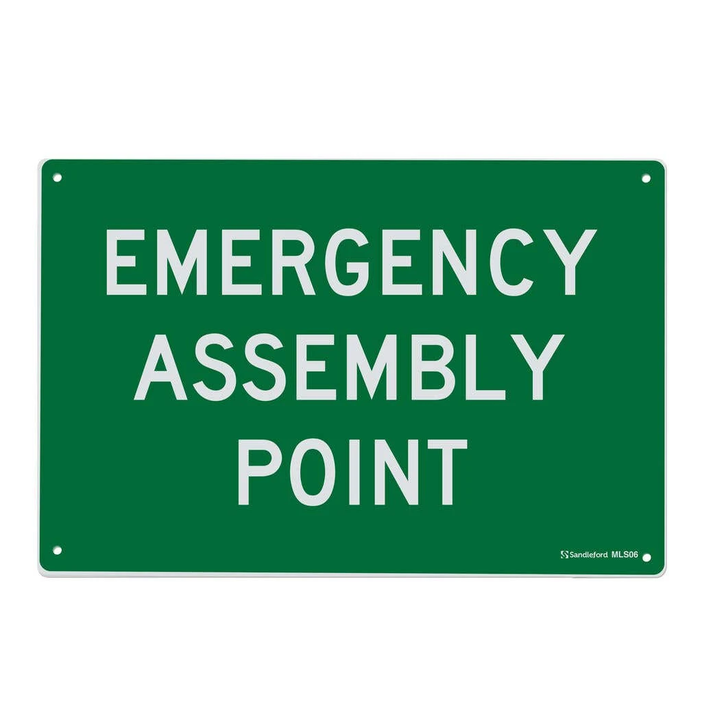- This “Emergency Assembly Point ” sign features eyelets for quick and easy attaching to walls and fences