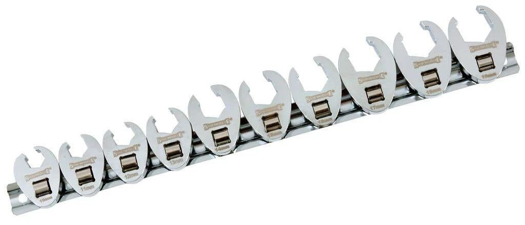 ‘s 10-piece Crowfoot Wrench Set with a ratchet is a popular combination for industrial applications. The wrenches feature a durable, bright chrome finish and laser-etched size identification for easy identification. They are quick to ratchet nuts and bolts without removing the wrench from the fastener. The set includes sizes 10-19mm, with the most popular sizes in between.