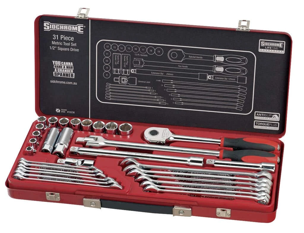 The 31 Piece Metric 1/2″ Drive Socket & Set is a comprehensive toolset that is perfect for automotive and industrial applications. This set includes a wide range of socket sizes, spanners, and accessories that are designed to tackle almost any mechanical task with ease. Since 1942, has been delivering quality tools to all trades people. is a much-loved and iconic Australian brand, known for unbeatable reliability, quality, durability and design.