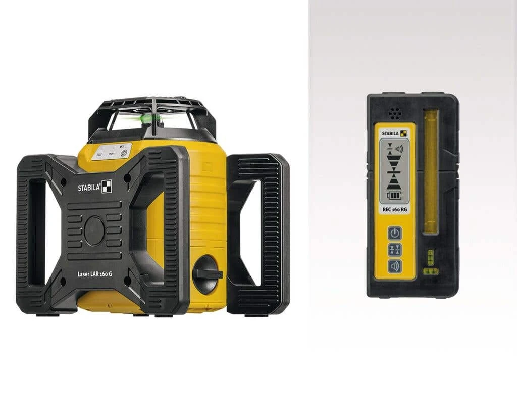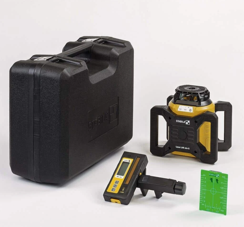 Stabila LAR 160 G Automatic Rotation Laser is a fully automatic, motor-driven rotation laser with high levelling accuracy of ± 0.1 mm/m and a fast self-levelling function within 20 seconds. It features Stabila GreenBeam technology for improved visibility of the rotating laser beam – green laser beams are four times more visible to the human eye than red beams.