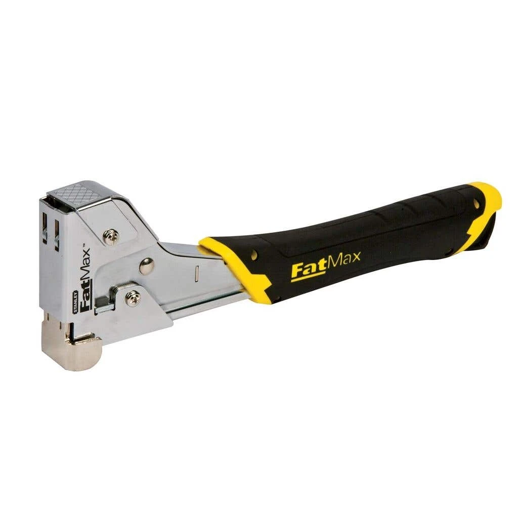 The Fatmax Hammer Tacker driver mechanism is a true time-saver, delivering more than 500,000 cycles, and featuring an anti-jam mechanism and surface guard. The bottom-load, high-capacity magazine accepts up to two full sticks or staples. Chrome-plated steel construction frame and comfort grip. This hammer tacker is built with an all-metal construction for maximum durability and features a comfortable, ergonomic grip handle that reduces hand fatigue during prolonged use.