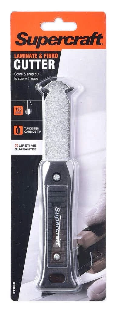 This is an ideal cutter for cutting laminate and fibro sheeting. It’s dual-bladed, which allows for either score and snap or guillotine cut. It features a Tungsten carbide-tipped blade that’s designed to last.