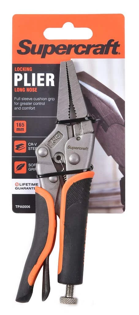 The Lockgrip Plier Long Nose 165mm is made with computer-generated knurl for smooth and fine adjustment, ensuring the plier still grips securely and tightly after a long period of use. The chrome vanadium steel material provides maximum strength and durability without compromising on comfort or functionality.