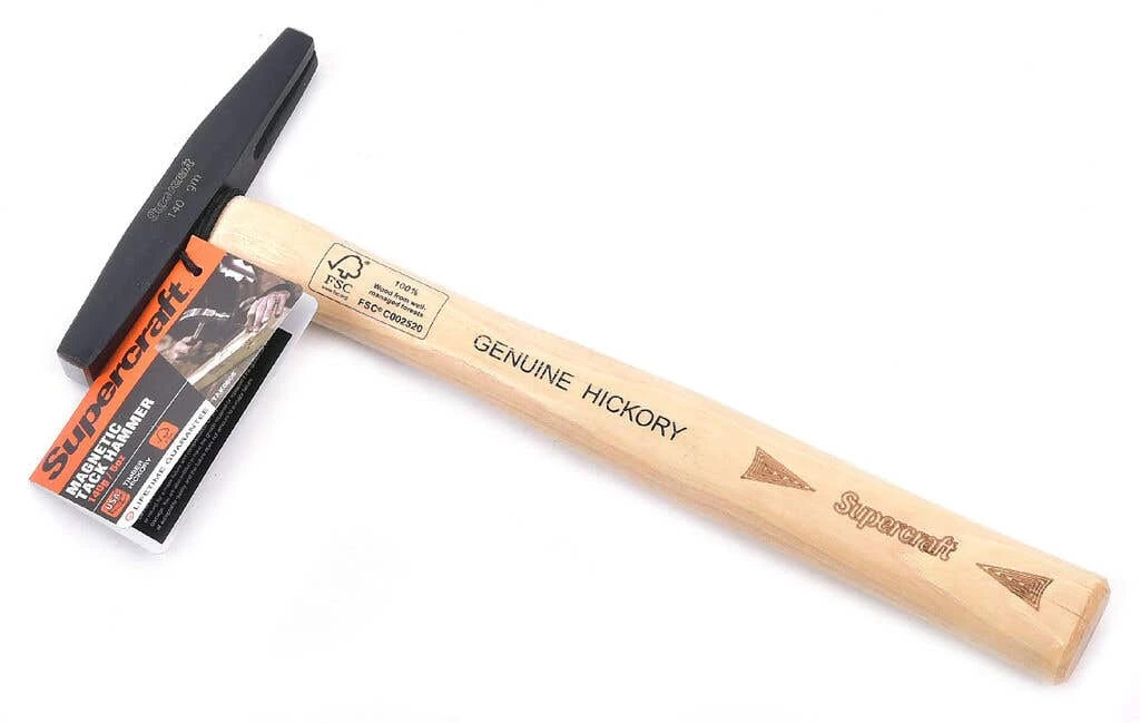 Strong, heavy, and sturdy, the Magnetic Tack Hammer is constructed from 44A high-grade steel for extra strength and longer life. It has a U.S hickory handle that is stronger and has better shock absorption than Asian-based timber, triple wedged to head.