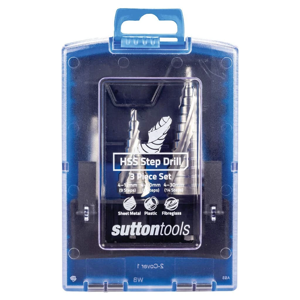 Step Drill Set is ideal for use in sheet metal, aluminium, plastic, and fibreglass, ideal for sheet metal without pre-drilling. During drilling, the next step deburrs the previously drilled hole. The step drill has a spiral flute for reduced vibration and greater control through steps.