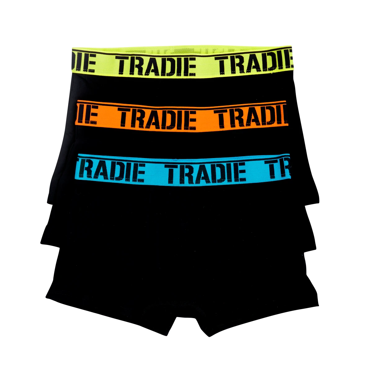 Experience extreme comfort through your busy day with the Tradie Fitted Trunks. This pack includes 3 fitted trunks with bright branded waistbands that will add a pop of colour to your underwear drawer. Crafted from a soft cotton/elastane blend, these undies are great for everyday wear. The soft elastic will offer you a comfortable fit and help keep the goods in there. Fully lined pouch and made from a cotton/elastane fabrication for comfort and durability.