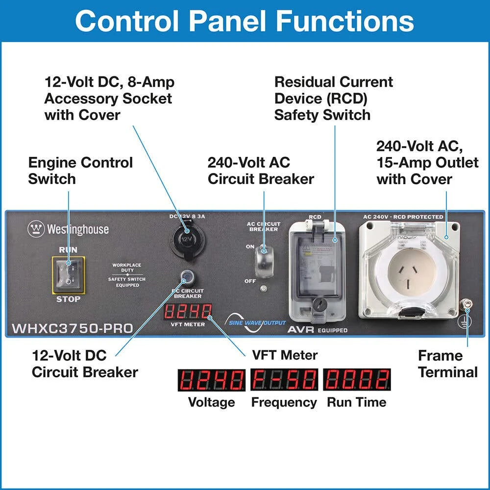 The Westinghouse WHXC3750E is ideal for general use around the home, keeping your utilities powered while coping with any utility disruption. The RCD safety switch protects you against overloads, and the 16.8 hours run time at 50% output with a 15 litre fuel tank gives you plenty of power to get through most smaller outages or other unexpected events.