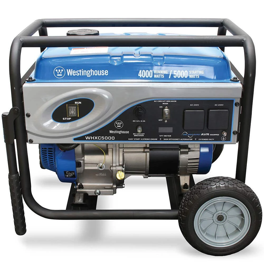 The Westinghouse Portable is a 5,000 starting/4,000 running watts machine. It features an 18.7-hour run time at 50% output with 25-litre fuel tank and has two 240 volt AC outlets and one 12 volt DC outlet. With a 292cc Westinghouse 4-stroke OHV petrol engine, this is a durable that provides reliable power during power outages or camping trips.